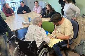 Empfangen wurden die Lernenden vom koordinierenden Praxisanleiter Christoph Wachsmuth, der die Strukturen, Abläufe und Besonderheiten der Einrichtung vorstellte. Ziel der Lehrvisite war die Vertiefung theoretischer Unterrichtsinhalte sowie die Vorbereitung auf das bevorstehende Pflegepraktikum. Die Klasse wurde in zwei Gruppen aufgeteilt, um einen intensiven und praxisnahen Einblick in den Pflegealltag einer stationären Einrichtung zu ermöglichen.